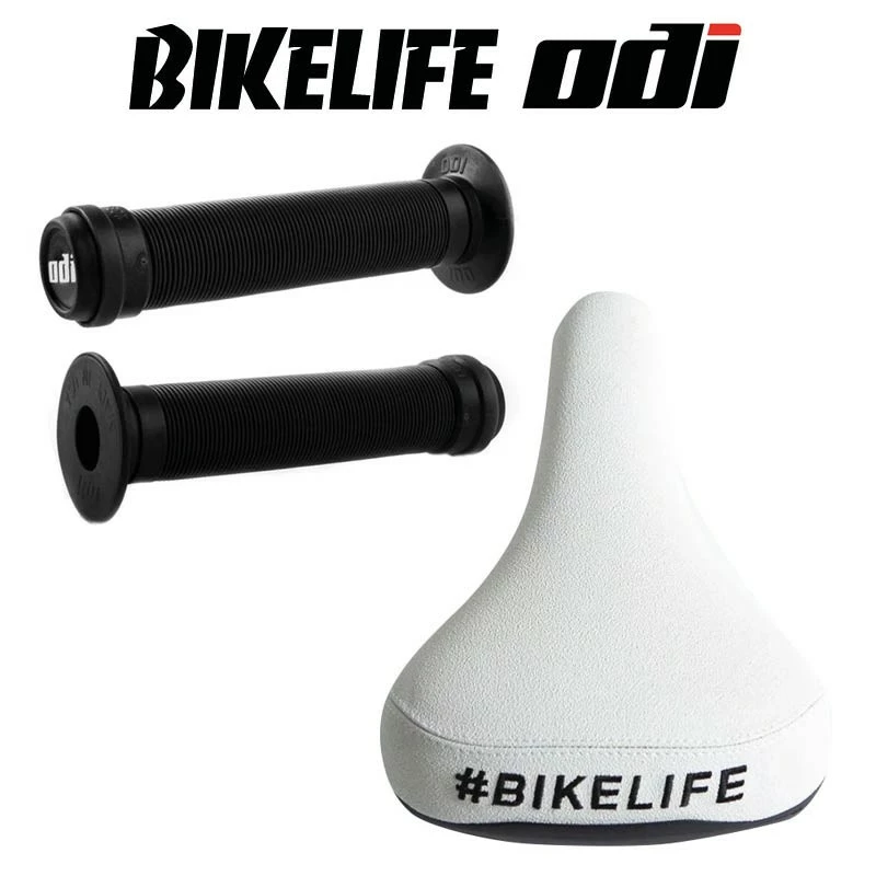 Pack Selle BIKELIFE Grippie Blanche+ Poignées ODI Longneck Std Noir