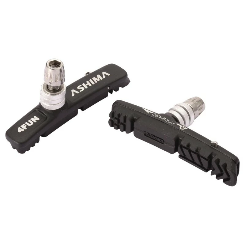 La Paire de Patins de freins Ashima de 72 mm de long pour freins type V-brakes offre un un freinage ultime et son anti-bruit et anti pluie!