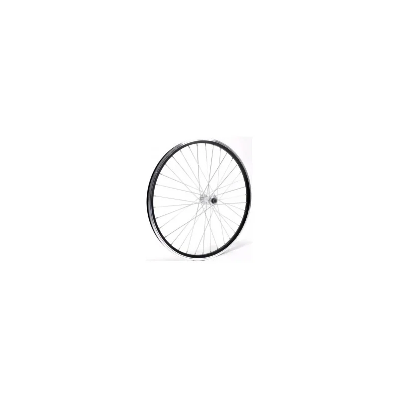 ROUE AV 24″ 36TROUS JANTE DOUBLE FOND NOIRE MOYEU ALU ARGENT 36 TROUS à BLOCAGE
